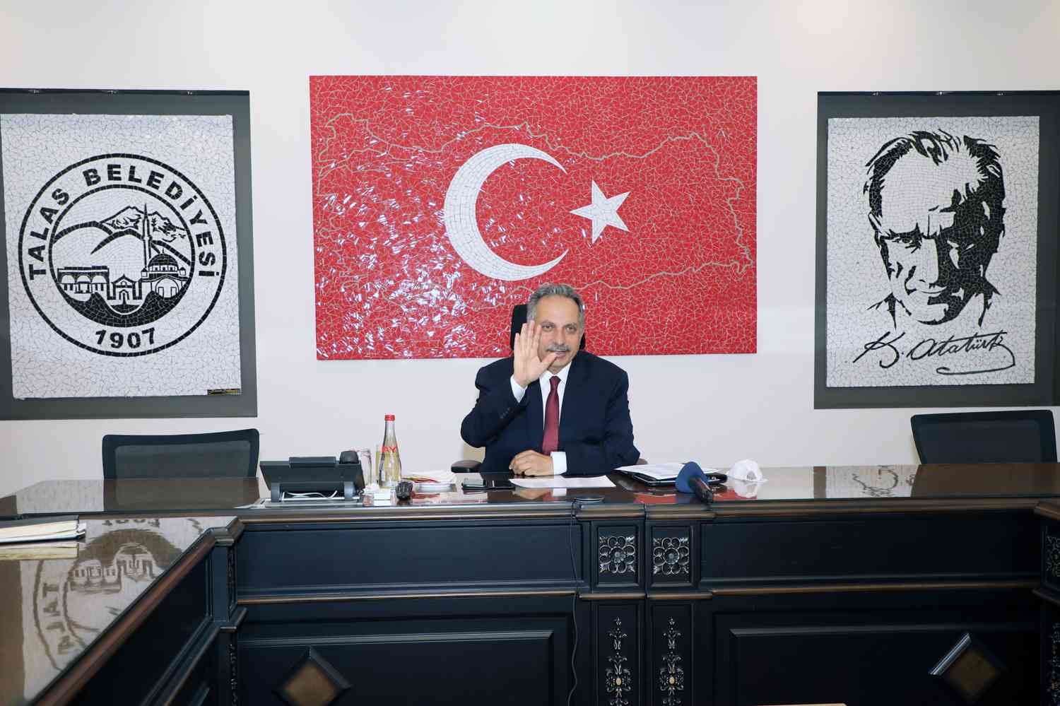 Talas Belediye Başkanı Mustafa Yalçın, belediye çalışanlarıyla video konferans yöntemiyle bayramlaştı.