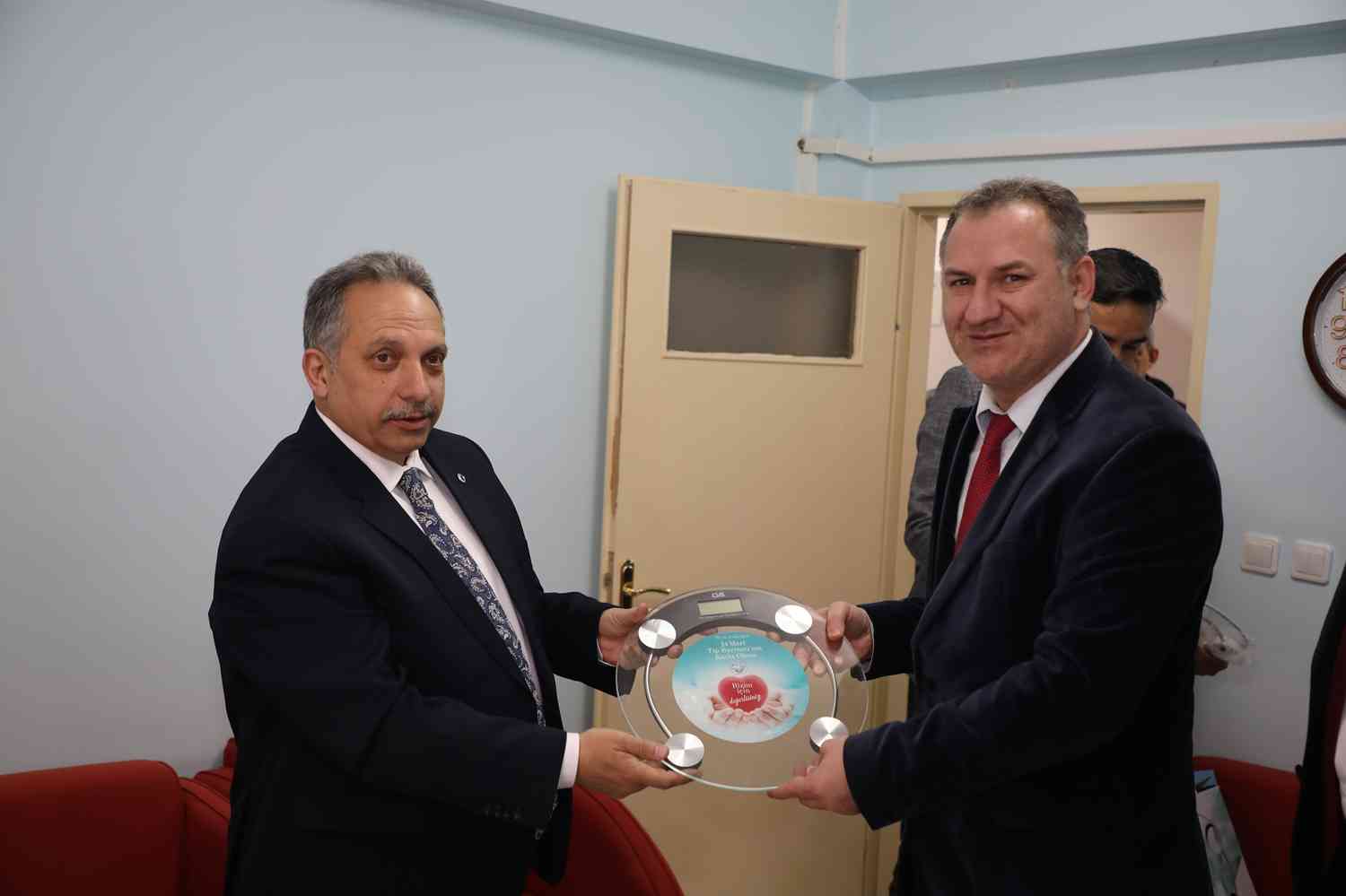 Talas İlçe Sağlık Müdürlüğü Dr. Erdal Yücel ve çalışma arkadaşları ile ziyaretlerine başlayan Başkan Yalçın, personele Talas Belediyesi tarafından özel tasarlanmış baskül hediyesinde bulundu. Başkan Yalçın’ın hediye baskülleri ilçe genelinde görev yapan tüm sağlık çalışanlarına dağıtıldı.