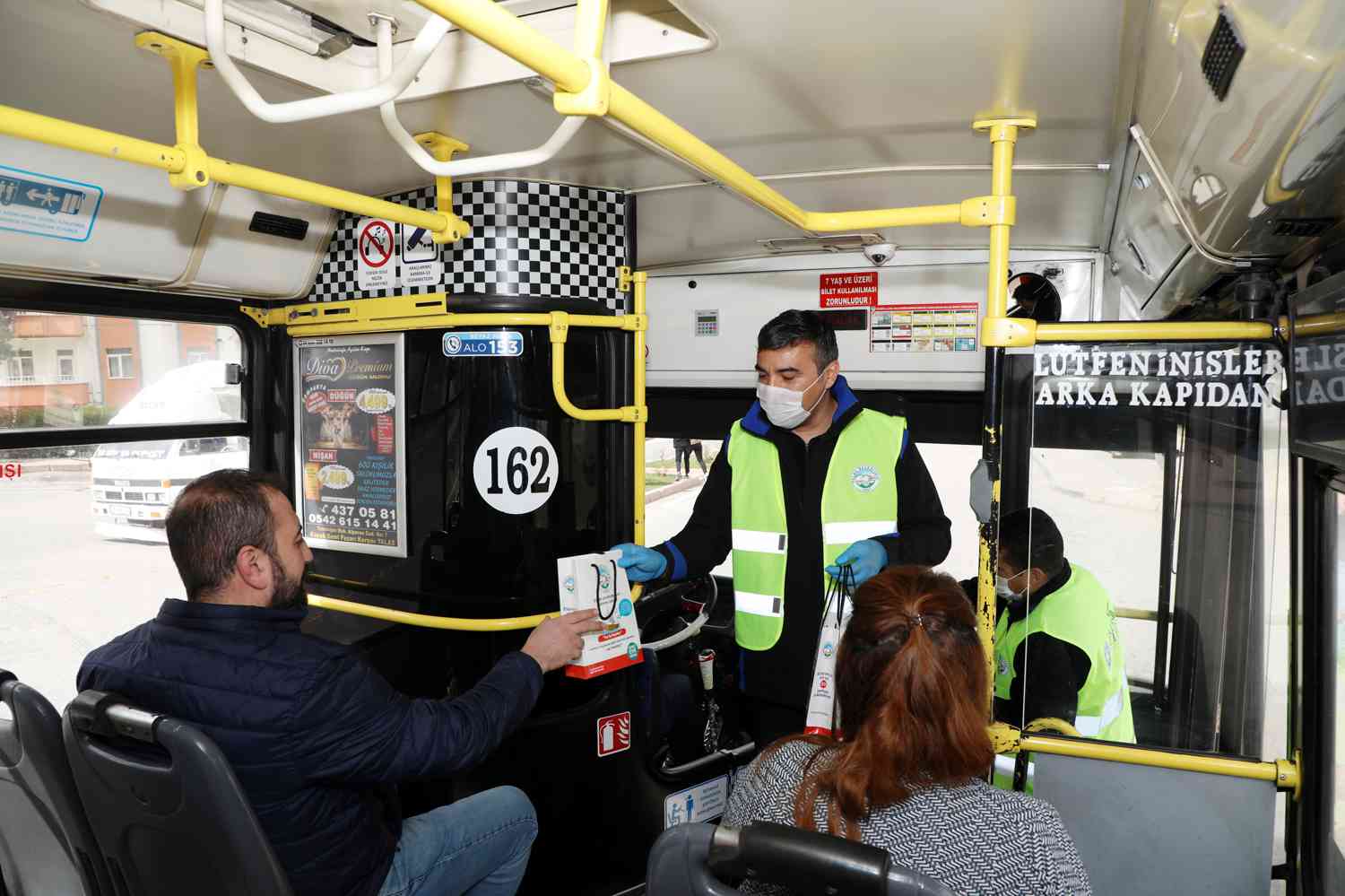 Ardından Talas’ta nüfusun yoğun olduğu Atatürk Bulvarı’nda ve diğer işlek yerlerdeki duraklarda, ATM’lerde ve otobüsler ile araçlardaki vatandaşlara hijyen çantası dağıtıldı.