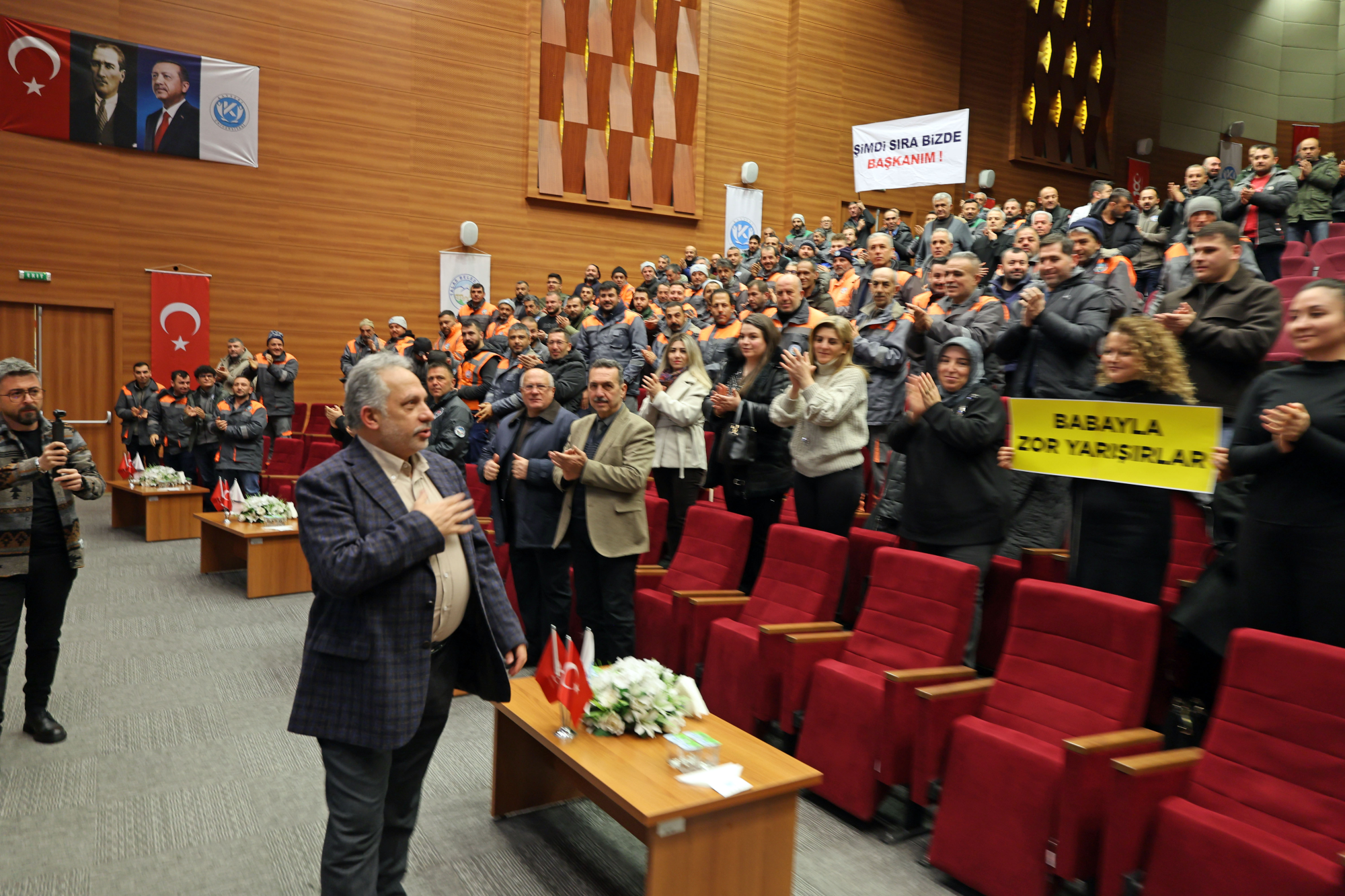 Sözleşmesi’nin ardından belediye çalışanları, Talas Belediye Başkanı Mustafa