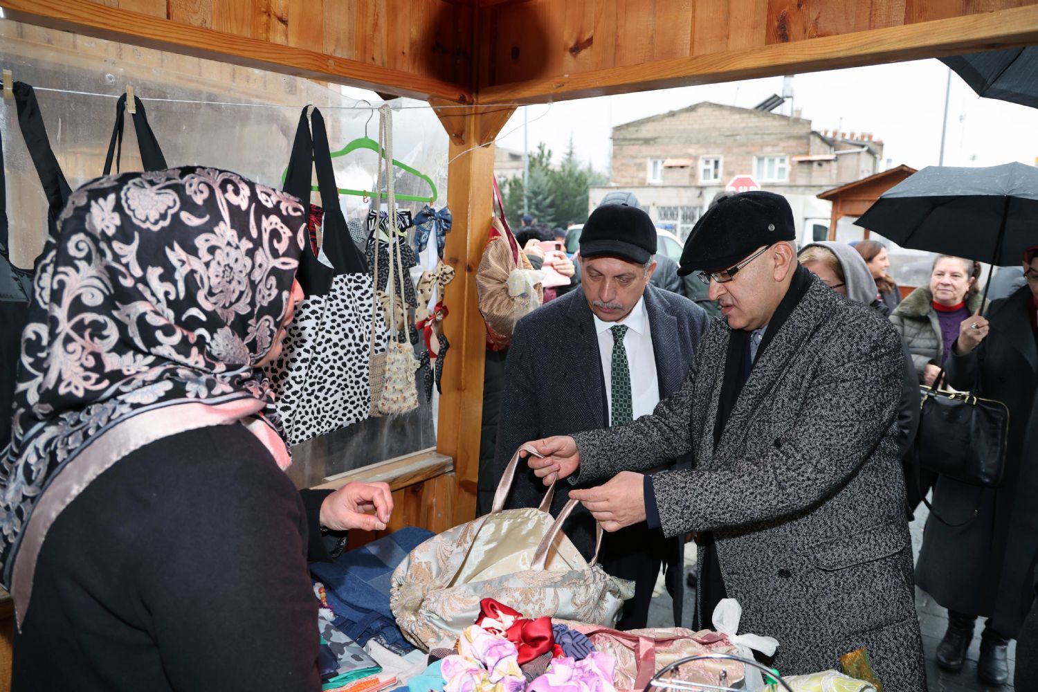 birbirinden kıymetli el emeği ürünleri inceleyen Başkan Yalçın ve Milletvekili