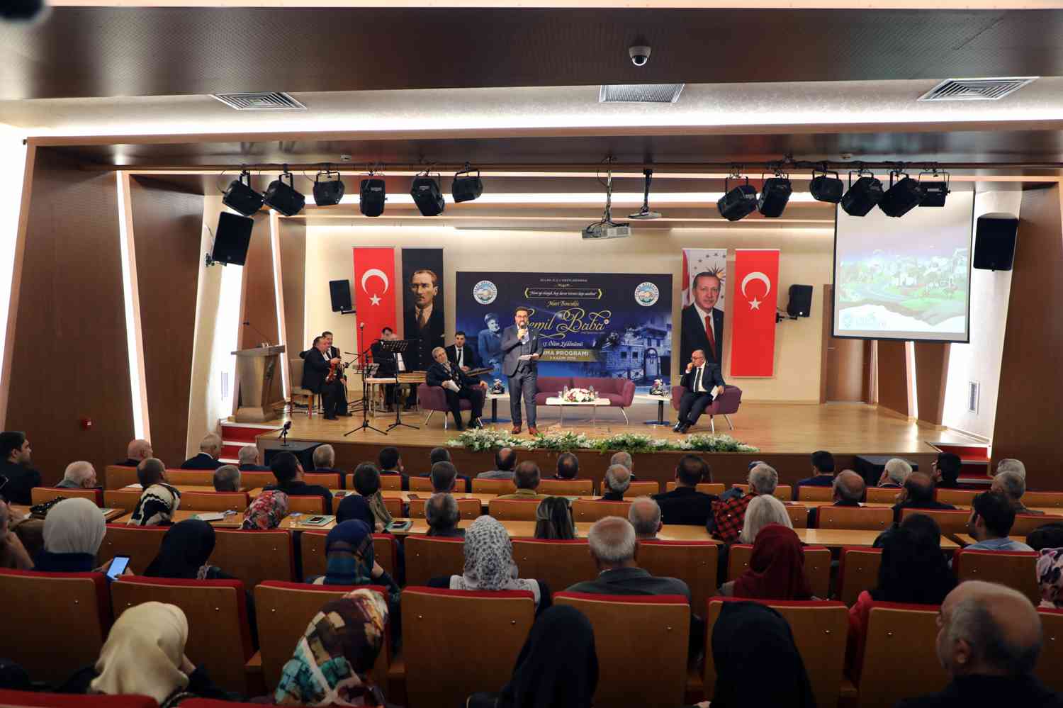 Tamamen dolu salonda gerçekleşen programda moderatör Mustafa Demirci de Kayseri Neveser Musiki Topluluğu eşliğinde sevilen ilahileri seslendirdi. Gecede ayrıca Cemil Baba’yı tanıyanlar da sahneye gelerek anılarını paylaştı.