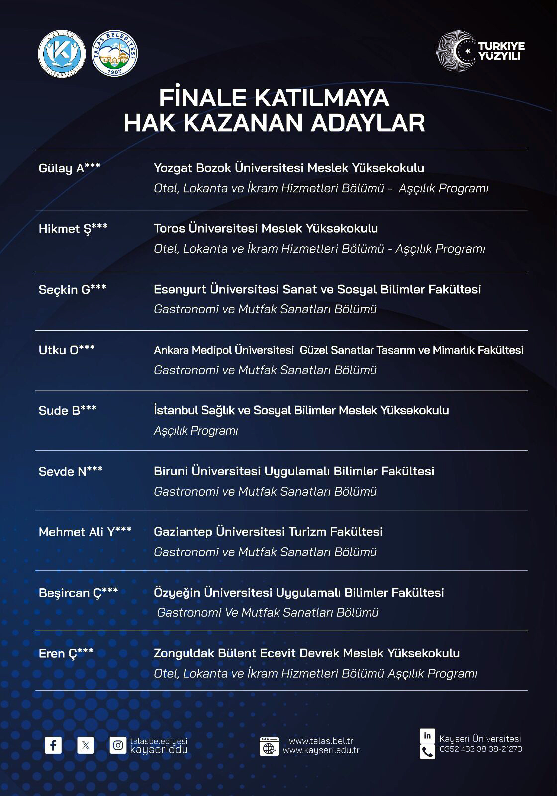 üniversitelerinden başvuru yapan adaylar arasından finale kalan 9 isim