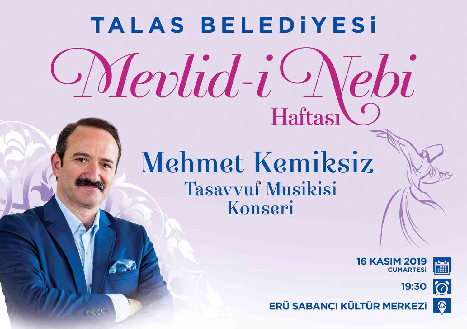 Talas Belediyesi, Mevlid-i Nebi Haftası etkinlikleri kapsamında Mehmet Kemiksiz konseri düzenleyecek.