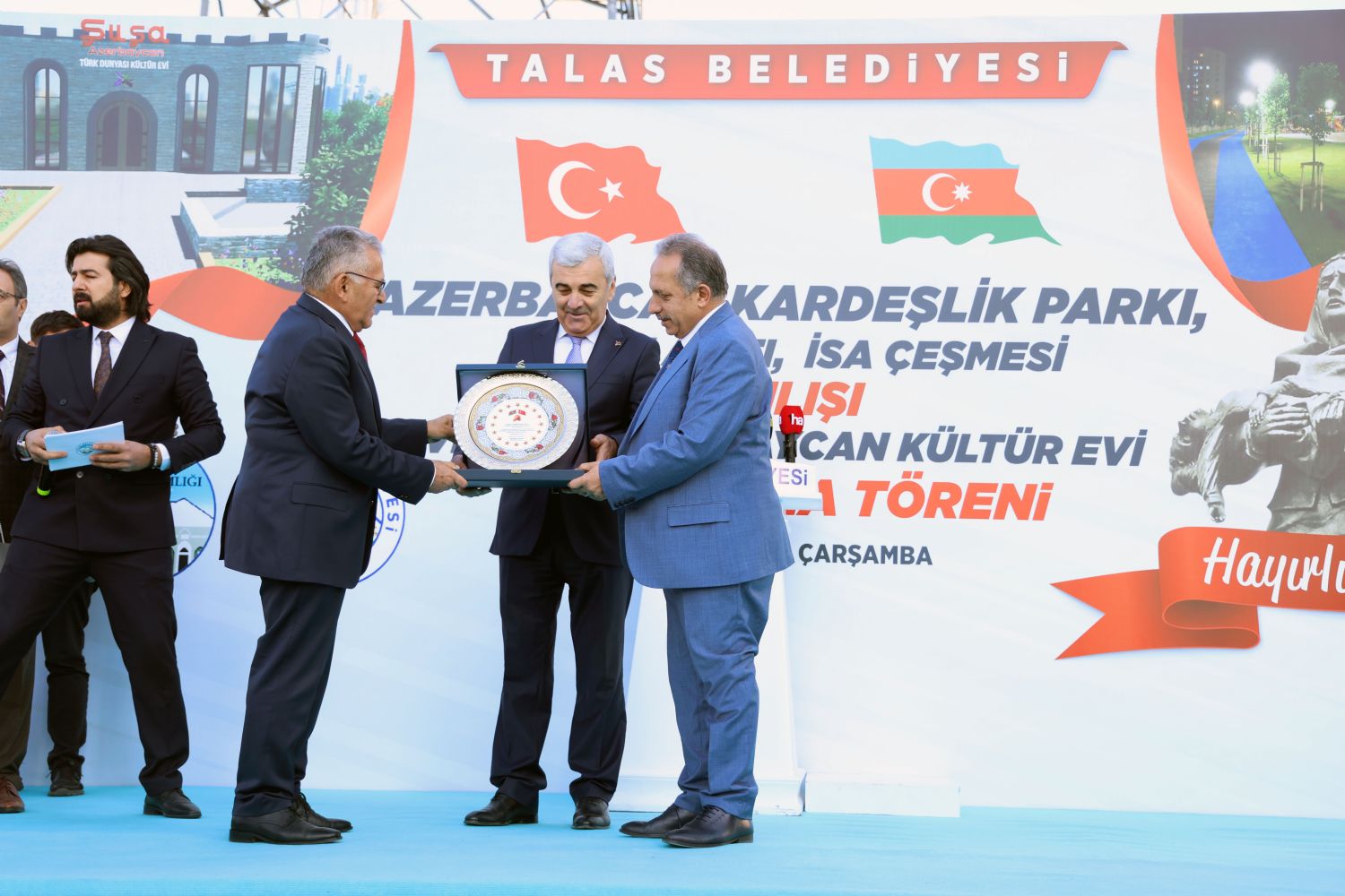 Memduh Büyükkılıç’a plaket verildi. Ardından Azerbaycan Kardeşlik Parkı, Hocalı